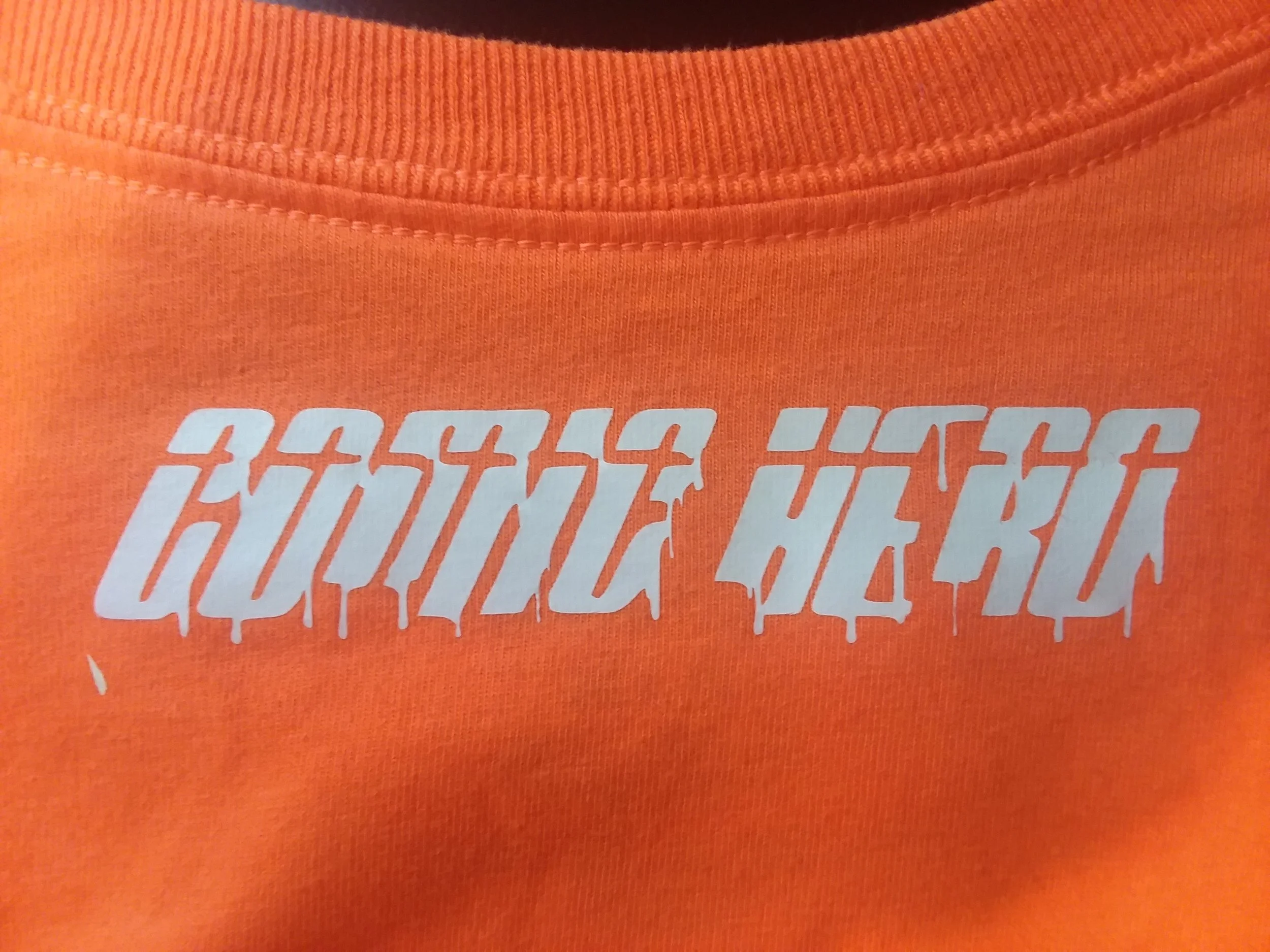 Celebrate Halloween and support the Comic Hero Show with this ghoulish CH tee. NOTE: The white vinyl on this shirt glows in the dark!!!